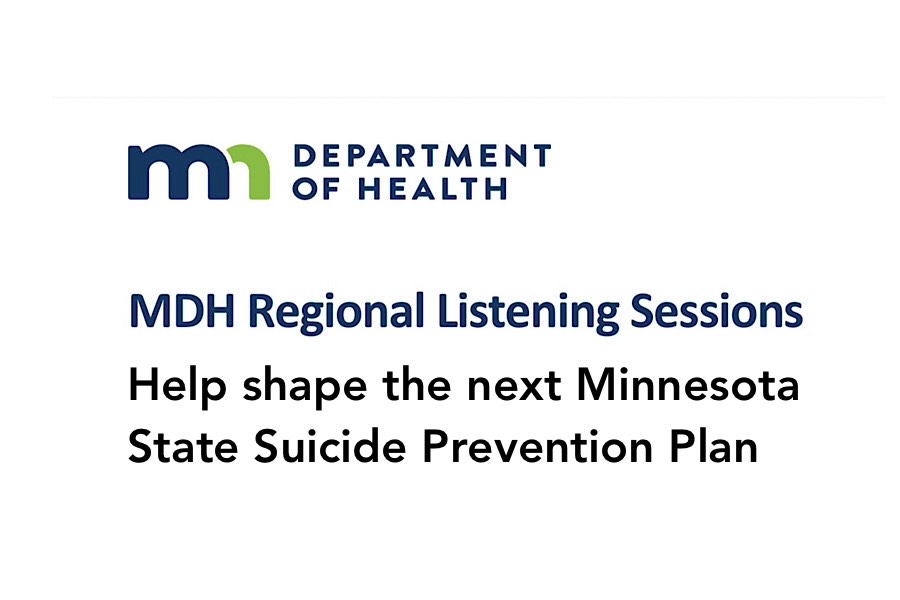 The Mental Health and Suicide Prevention Unit of the Minnesota Department of Health (MDH), in collaboration with the Minnesota Suicide Prevention Taskforce, is inviting community members to help shape the next Minnesota State Suicide Prevention Plan. This plan helps guide the priorities and strategies of MDH, partner state agencies, and the Minnesota Suicide Prevention Taskforce, shaping how we work together and where we focus our efforts to support mental health and suicide prevention in Minnesota
