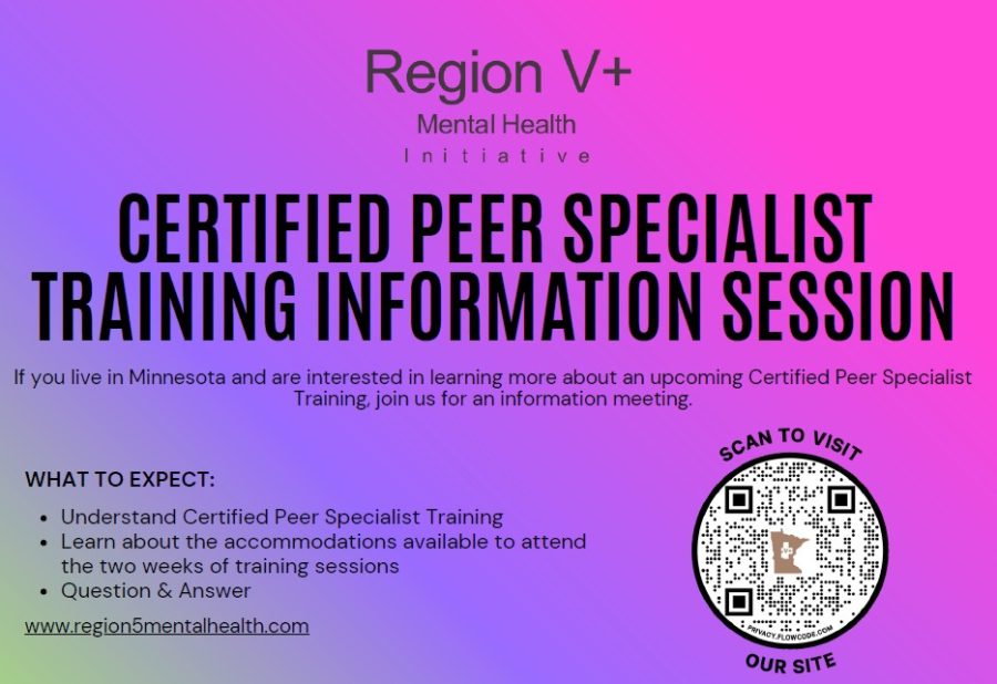 If you live in Minnesota and are interested in learning more about an upcoming Certified Peer Specialist Training, join us for an information meeting.