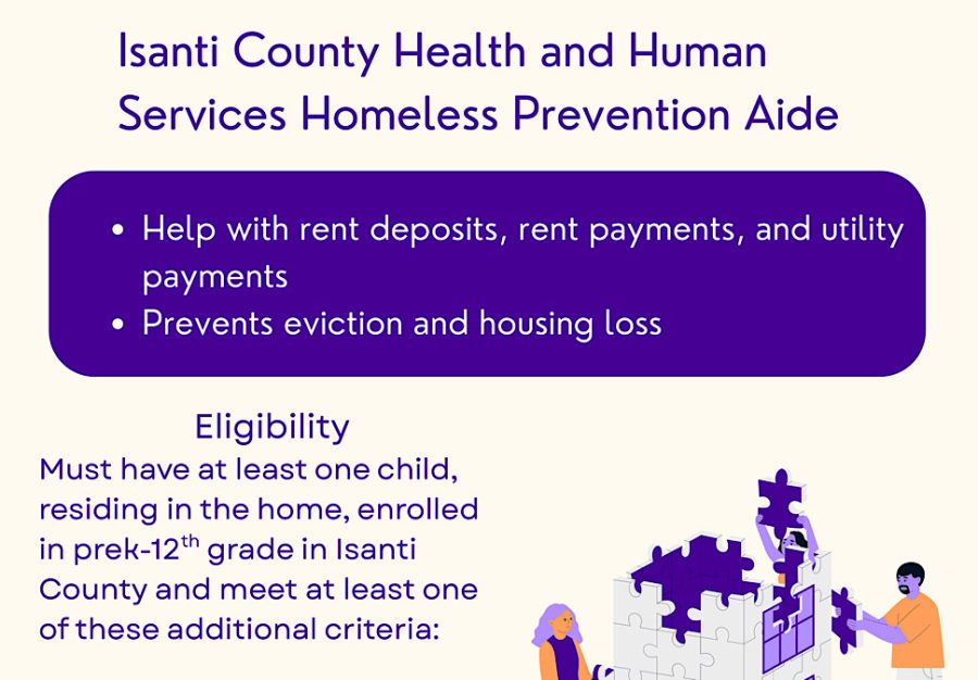 Must have at least one child, residing in the home, enrolled in prek-12th grade in Isanti County and meet at least one