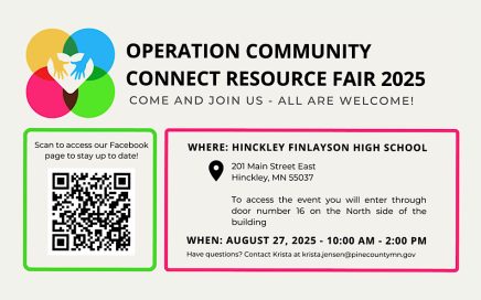 OPERATION COMMUNITY CONNECT RESOURCE FAIR 2025 COME AND JOIN US – ALL ARE WELCOME! AUGUST 27, 2025 – 10:00 AM – 2:00 PM Hinckley Finlayson High School 201 Main Street East – enter at door 16 on the north side of the bldg Hinckley, MN 55037 What to expect? Free brand new backpacks Free cold-weather […]