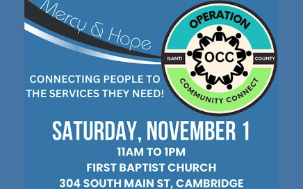 Isanti County Operation Community Connect Connecting People to the Services They Need! 11am to 1pmSaturday, November 1, 2025 Free Event for All Isanti County Residents! First Baptist Church 304 South Main St, Cambridge Come Meet, Ask, Observe the Resources Isanti County Has to Offer! New Vendors! Free Haircuts! Free Dental Screenings! Free Flu Vaccines! Free […]