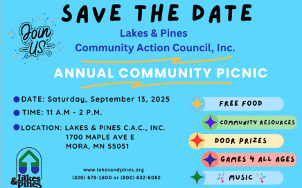 Join us! Lakes and Pines 2nd Annual Community Picnic and Silent Auction Fundraiser Saturday, September 13, 2025 11:00 AM – 2:00 PM 1700 Maple Ave E, Mora, MN 55051 Free Food Community Resources Door Prizes Games for All Ages Music Online Silent Auction You can access the Online Silent Auction utilizing the link below. Please […]