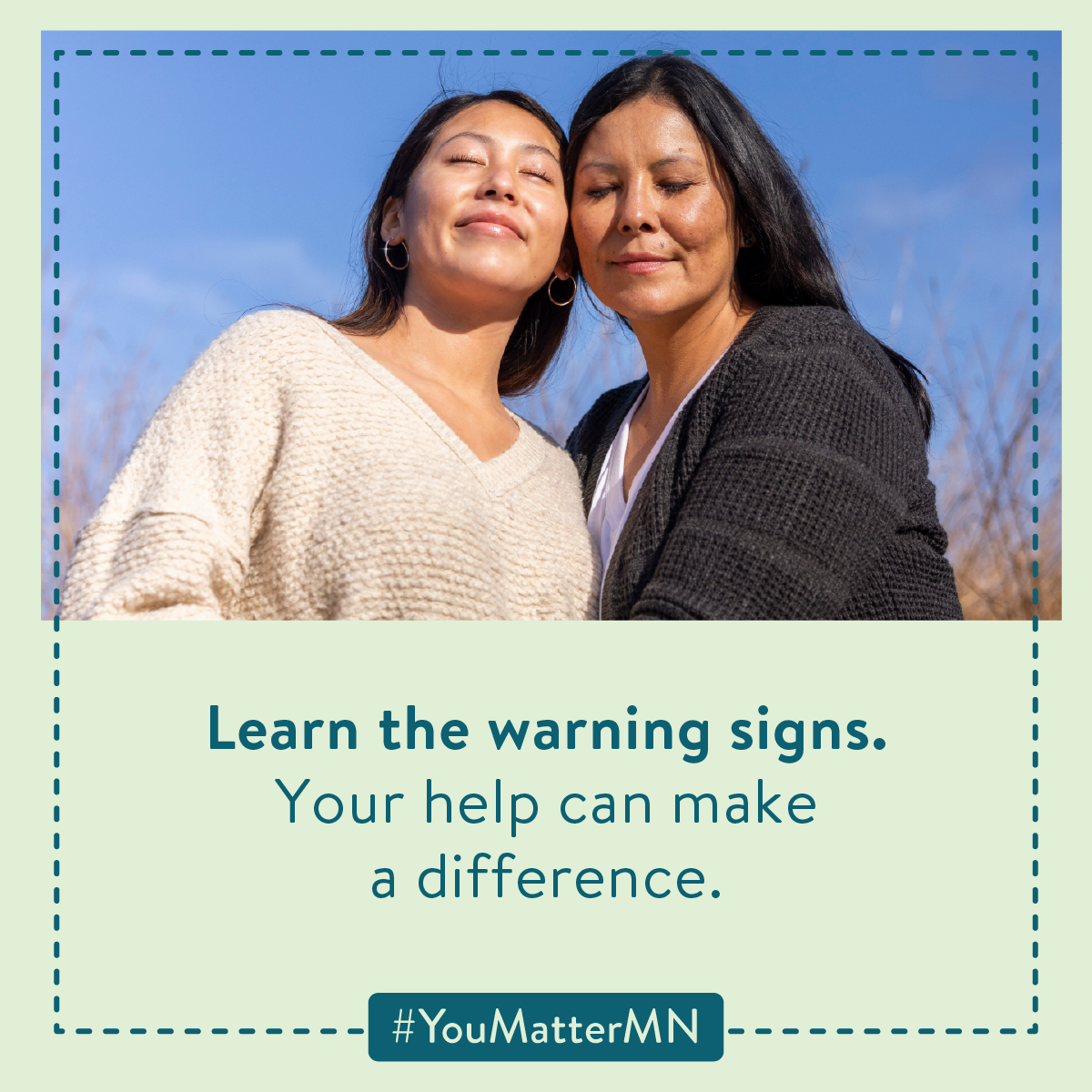 - Suicide Prevention Trainings (MDH): https://www.health.state.mn.us/communities/suicide/communities/preventsuicidetrainings.html